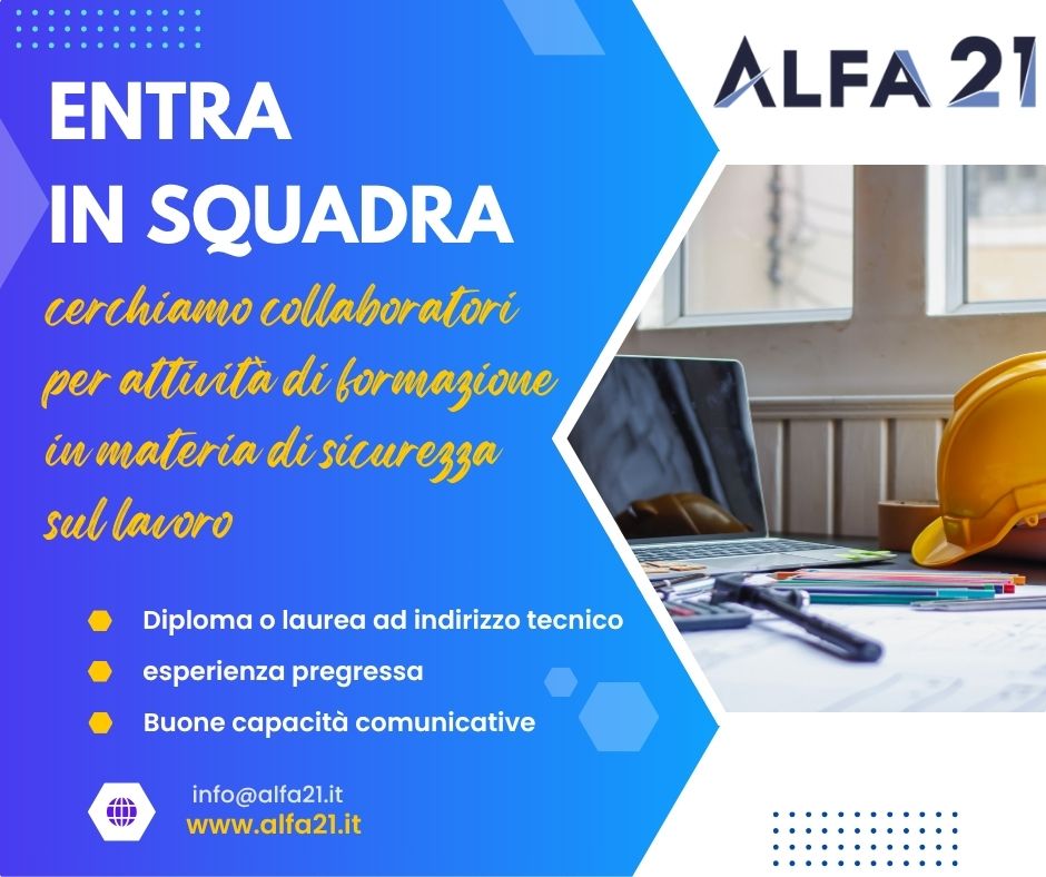 Alfa21 ricerca collaboratori per attività di formazione in materia di sicurezza sul lavoro